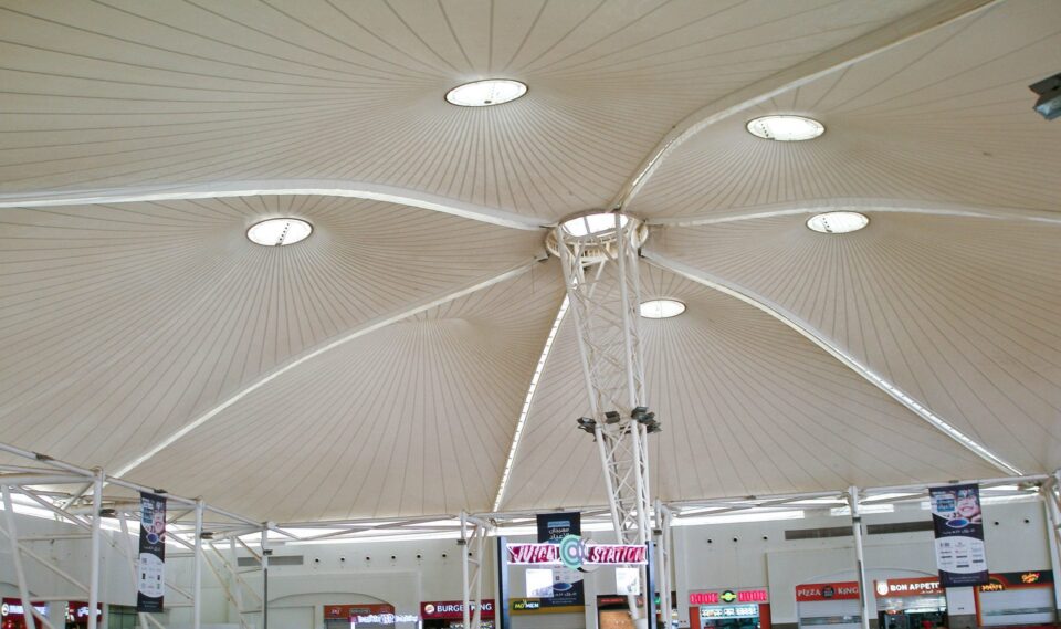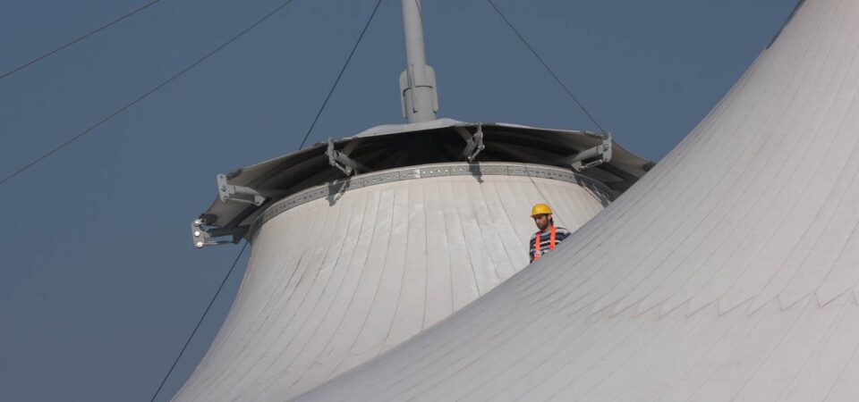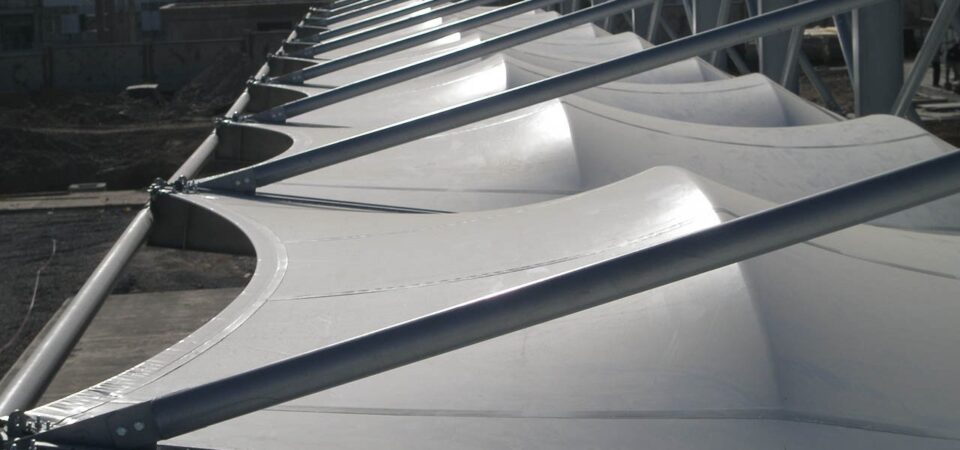 With its 3200 m² area, this tensile structure is currently the largest monolithic membrane roof …